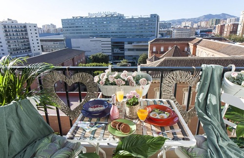Luminosos apartamento de dos dormitorio, frente a la estación de tren - AVE María Zambrano, con una amplia y soleada [hidden] 800 metros de la playa y a diez minutos paseando del centro históricos de Málaga.Totalmente equipada, con cocina totalmente amueblada, WIFI y espacio de trabajo.