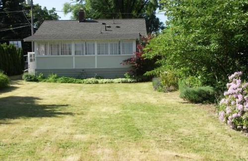 The Mountain View Cottage is a cozy, light-filled cottage with a large, airy sun porch--perfect for enjoying the Mt Adams view with your morning coffee. Located in the heights of Hood River, the cottage sleeps four, with one bedroom (queen-sized bed) and a full-sized futon bed in the sun room. The cottage comes with a completely equipped kitchen, as well as a gas grill, picnic table and large, sunny yard with plenty of room for adults, children and pets to play. It has a TV (but no cable service) and a DVD player, with a few DVDs. The yard is deep and private but not fully fenced.