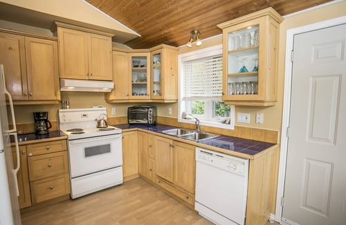 The cottage is equipped with all full sized appliances - fridge, stove, dishwasher and washer & dryer. In addition there is a toaster/convection oven, microwave, electric kettle, crock pot, and coffee maker. The kitchen is fully stocked with all the cooking and serving comforts of home. We are on municipal water (drinkable) and septic system. There is a wood stove in the living room and baseboard heating in every room.