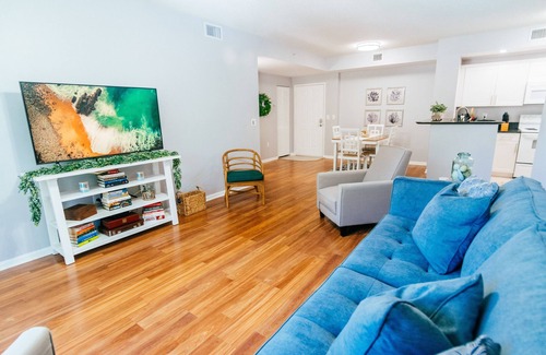 Beautiful 2-bedroom apartment in the heart of CityPlace across from the Kravis Center and the Palm Beach County Convention Center. Fully equipped with Wi-Fi, 4K TV, full-size washer & dryer, bed linens, towels, kitchen equipment, building amenities, such as pool & gym. The apartment has been recently redesigned with beautiful finishes and furniture for a premium stay. It can accommodate up to 6 guests with a brand-new Sealy Posturepedic sofa bed in the living room. One covered parking spot is included in the gated garage, with a secured walkway, with direct access to the condo and City Place. The city also offers a FREE, in-town trolley service. You are also centrally located, where you can just walk to several great restaurants, shops, theatre, bowling, and grocery store.