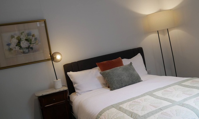 Marvellous Middle Park, fully renovated, stylish ground floor, 2 queen bedroom, 1 bathroom apartment in a heritage Art Deco block. Sleeps 4. Spacious, open plan living/dining/kitchen areas with garden and light court outlooks. Jungle garden views from the main bedroom, workstation desk and the courtyard with outdoor table & BBQ. Fully equipped kitchen. Laundry. Delightful décor. Collected artwork. Smart TV’s. Bluetooth Sound System, Wi-Fi, A/C. Top location near park, beach, shops & transport.