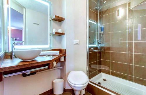 Brit Hotel Confort Pau Lonsis in the heart of wine country, halfway between the sea and mountains. It offers free parking and free Wi-Fi. Our establishment has electric terminals. All of the rooms are room with attached bathroom with a shower, heating, a telephone and flat-screen TV with cable and satellite channels such as beIN Sport, Canal satellite in English and Canal+. This Brit Hotel can be reached via the RN117. Meal trays can be enjoyed for lunch and dinner.