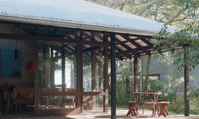 The open plan studio (orgininally built for an artist) has a double bed and ensuite upstairs and two single beds with work table downstairs. The studio is linked to the main house by the upstairs verandah. The studio is more difficult to warm up and guests need to be happy to wear warm gear inside in winter months.