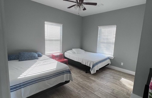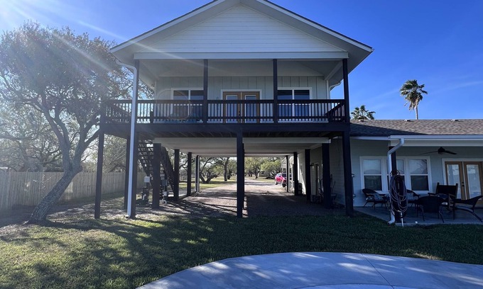 2 bedroom, 2 bathroom rental in Baffin Bay. Each room has 2 full size beds. Property had Commercial Size Pier. Guest house has just been built and ready for y’all to enjoy! Come relax and fish off the pier. Guide recommendations for bay fishing. Rental is upstairs so please note to make sure all parties are able to use stairs. Please come and enjoy our piece of paradise in South Texas! Sit on the deck and enjoy the view! There is a pool located on the property. Guests must sign a pool waiver form to stay.