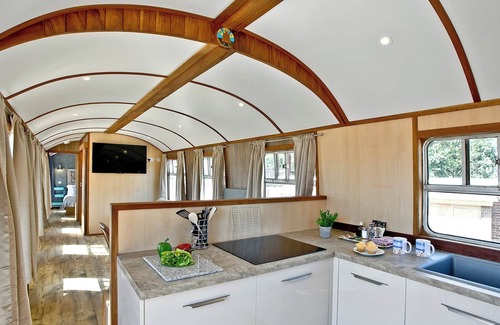 Charmingly attractive Brunel Boutique Railway Carriages, moments from the beach, with 3 bedrooms, 1 double and 2 twin beds. open-plan living space with TV, kitchen area with microwave and dishwasher. Shower. Communal sitting-out area with garden furniture. No pets.. For a unique experience where you are sure to create memories to last a lifetime, look no further than Brunel Boutique Railway Carriages.