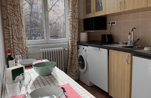 A recently renovated apartment, Buda's Crib apartment offers accommodations in Budapest. Among the facilities at this property are an elevator and private check-in and check-out, along with free Wifi throughout the property. Staff on site can arrange a shuttle service. The air-conditioned apartment consists of 1 bedroom, a living room, a fully equipped kitchen with a dishwasher and a coffee machine, and 1 bathroom with a bath and a hair dryer. Towels and bed linen are available in the apartment. For added privacy, the accommodation has a private entrance and soundproofing. Hungarian National Museum is 1.7 miles from the apartment, while Gellért Hill is 2 miles from the property. Budapest Ferenc Liszt International Airport is 8.7 miles away.