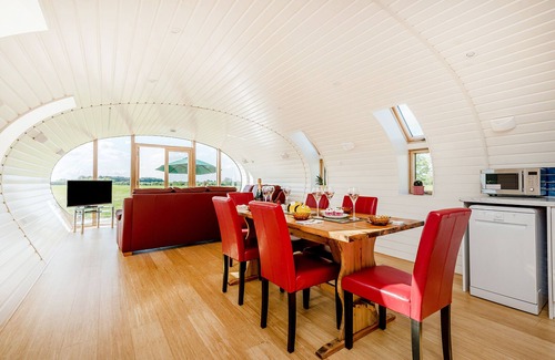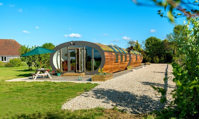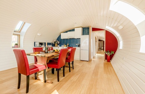 Bumble Barn will fill you with absolute delight! This eco barn is a true treasure and the shape and stylish interior will capture your heart from the moment you see it. Situated in a peaceful and secluded hamlet along the old Roman road between coastal Hythe and medieval Canterbury, it is perfectly located for countryside, seaside and city activity. The open living space, with its huge panoramic window and French doors, draws light, sunshine and the stunning view over the outside patio and open countryside into the room. The master bedroom and en suite, two twin bedrooms and further bathroom, are beautifully presented within this unique space and provide comfort and versatility for friends and family looking for something special. If you can bear to leave Bumble Barn, you can walk or cycle to a variety of old country pubs or be picking up your warm croissant and locally made honey for breakfast from the village shop. Along with everything the rural villages of Kent have to offer, the popular seaside town of Hythe is only 9 miles away and great for water sports, sailing, paddle boarding, canoeing and sea fishing. The historic cathedral city of Canterbury is 10 miles in the opposite direction with its famous cathedral, a variety of restaurants, shopping, theatre and beautiful gardens within the city walls. Things to do for a day out are limitless from this great location.