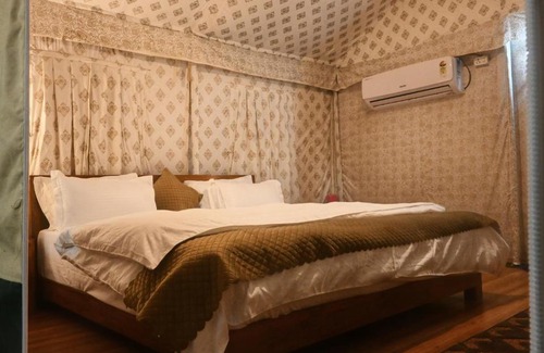 Located in Rājgarh, 17 miles from Lakshmana Temple, Bundeli Camps and Resorts, Panna features views of the garden. Featuring a garden, the 5-star resort has air-conditioned rooms with free WiFi, each with a private bathroom. The property provides room service, a tour desk and luggage storage for guests. At the resort, every room has a closet. All guest rooms will provide guests with a desk and an electric tea pot. Guests at Bundeli Camps and Resorts, Panna can enjoy a buffet or an Asian breakfast. At the accommodation you'll find a restaurant serving American and Indian cuisine. Vegetarian, dairy-free and kosher options can also be requested. Free private parking and a business center are available, as well as a 24-hour front desk. Kandariya Mahadeva Temple is 17 miles from Bundeli Camps and Resorts, Panna. Khajuraho Airport is 16 miles away.