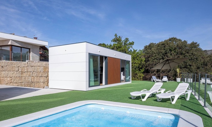 The Bungalow 2 con piscina en la playa is located in A Pobra do Caramiñal and impresses guests with its close proximity to the beach. The 28 m² property consists of a living room, a kitchen, 1 bedroom and 1 bathroom and can therefore accommodate 4 people. Additional amenities include high-speed Wi-Fi (suitable for video calls) with a dedicated workspace for home office, a smart TV with streaming services, air conditioning as well as a washing machine.