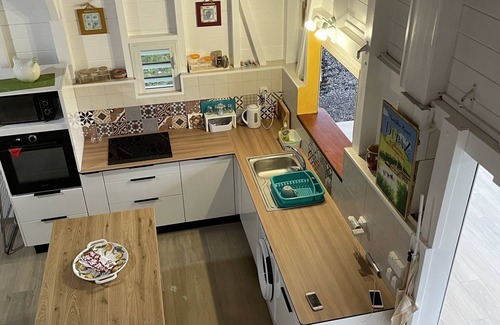 Prepare a home-cooked meal in the kitchen, complete with an oven, a stovetop, and a refrigerator, as well as a coffee maker, an electric kettle, and a microwave. Bathroom amenities include a hair dryer, towels, and toilet paper. And because there's access to laundry facilities, you can go a bit lighter on your packing. Other amenities include bed sheets, an ironing board, air conditioning, and a dining table.