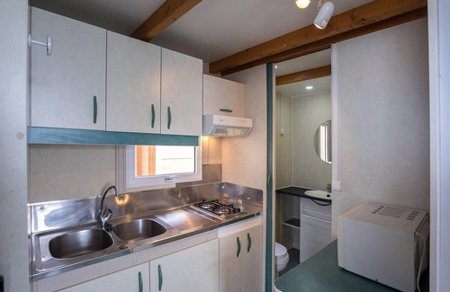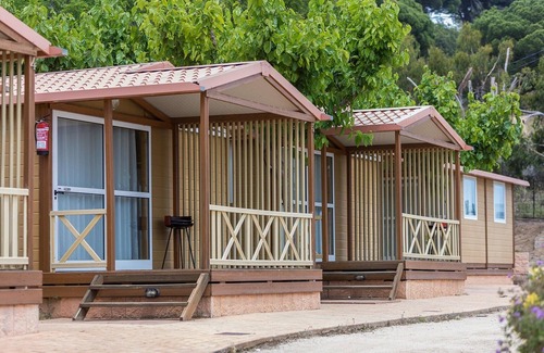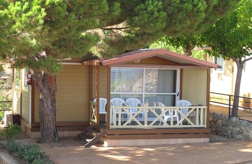 Nestled in a family-friendly camping site spanning 70,000 m² of scenic land, this property is perfectly situated between the sea and mountains, offering easy access next to the N-II (Km. 665). Just 1 km from Calella, the bustling center of the Costa de Barcelona Maresme, and 40 km from Barcelona, it’s an ideal getaway for relaxation and exploration. This spacious bungalow accommodates up to 5 people, with two bedrooms: one with a double bed and another with two bunk beds and an additional single bed. The bungalow is tastefully decorated with modern touches and features stunning mountain or sea views. It includes a private bathroom, a living-dining area with a flat-screen satellite TV, and a kitchenette equipped with a microwave, fridge, and hob. On-site, guests can enjoy a range of facilities, including two swimming pools, tennis and paddle courts, a multisport court (basketball and football), ping-pong, and a children’s playground. During July and August, the campsite offers fun animation activities, and the "GUA-GUA" small train helps guests easily access the pool and sports areas. Other amenities include a reception, bar/restaurant, grocery store, laundry, sports and gym facilities, and free Wi-Fi (first ticket only). Pets are allowed on request (excluding dangerous breeds), and a deposit of 150 euros is required. Bed linen and towels are available for an extra charge. Check-in is at 16:00, and check-out is at 10:00.