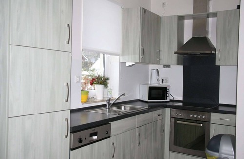 Layout: Ground floor: (hallway, Living room(TV(satellite), stereo unit), Kitchen(4x cooker(ceramic), microwave, dishwasher), bedroom(double bed), bedroom(double bed or 2 single beds), bathroom(shower, washbasin, toilet))