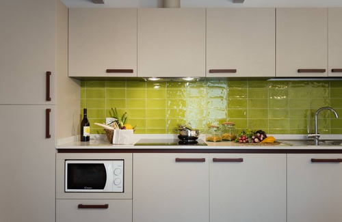 - Kitchenette equipped with glass-ceramic induction stove, with refrigerator and microwave oven;