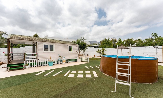 In Pinos de Alhaurín, the Bungalow Villa Aleo solo familias with step-free access and interior offers an excellent view of the mountain. The 37 m² property consists of a living room with a sofa bed for one person, a kitchen, 2 bedrooms and 1 bathroom and can therefore accommodate 5 people. Additional amenities include Wi-Fi with a dedicated workspace for home office, a TV, air conditioning, a washing machine, beach/pool towels as well as children's books and toys. A baby cot is also available. This property offers a private outdoor space with a pool, garden, open terrace, covered terrace, and barbecue facilities.