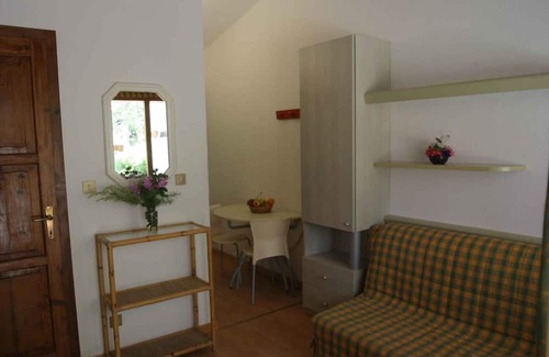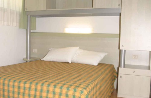 The bungalow is functional furnished. The property is located in a residence. For use are available: children's playground.Holiday resortreception (24 hour service), 1 restaurant, bar and internet (WLAN). Laundry service - optional for a fee on site, ironing service - free of charge LocationGrado. The bungalow is located in a residence, on a plot with trees. Overlooking the sea and nestled in a lush and centuries-old pine forest, just a few kilometers from the wildlife oasis of Val Cavanata, the Residence is the ideal place to spend a holiday with a thousand faces. The days on the beach or in the swimming pool at the campsite, the numerous recreational opportunities, all the services that the structure offers and the proximity to Grado, the Isola del Sole rich in tradition and history, will make the time spent with us pleasantly unforgettable. The Residence offers all the comforts of a campsite and much more: not only a Blue Flag sea for years, but above all entertainment with tennis courts with night lighting, football, mini golf, table tennis and a playground for children. An area rich in beauty, different types of accommodation for every need, a variety of services and a long-standing passion make our structure ideal for holidays with the whole family. The access goes via a side road. Parking lot (for 1 car) on the property. There is a charging station for electric cars on the property. Specialair conditioner, central heating. Facilities: cot and high chair. PoolOutdoor pool. Children's pool. Size of the wellness area 300 m², swimming area - free of charge, outdoor pool 200 m², deck chairs on the beach/parasols on the beach (05/09/2024 to 09/22/2024) - optional for a fee on site LeisureIn the complex: gym, mini golf, tennis, table tennis and bike rental. animation for children. Bicycle rental - depending on availability, optionally for a fee on site, volleyball, football, sports & entertainment programs - free of charge, May 17th, 2024 - September 15th, 2024: Animation for children aged 3 to 10 Dogsallowed, EUR 6.00/pet per day. DistancesShopping opportunity 5 km, restaurant 10 m, town center 5 km.In summer: Bathing possibility 300 m in Grado (beach 300 m in Grado). DivisionBungalow, 1 floor, 2 rooms (including 2 bed rooms), 26 sqm, in total 3 beds. RoomThe entrance in your bungalow is wheelchair accessible. Bedroom with 1 double bed, TV, access to the terrace and Cot possible for overcrowding: Yes, desk. Bedroom with 1 single bed. Kitchenette with fridge and Gas or electric stove. Bathroom with shower and WC. Credit cardsVisa, MasterCard. Terms of lease and pricesIncluded in the priceinternet access, air conditioning, parking place, safe, electricity, water, heating, final cleaning, bed linen, pool, fitness room, table tennis, mini golf. Side costs-Costs on the spot:/Obligatory:hand towels to bring along. local tax by local tariff (if charged).On request:baby cot 3 € per bed per day. For a fee: bicycle, high chair, sunloungers at the beach, sunloungers at the beach.Deposit:EUR 50,-/object.