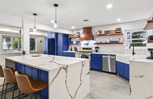If you're looking for relaxation and rejuvenation - look no further! This renovated, spacious 4-bedroom 4-bathroom WATERFRONT home sits right on Burnet Bay and has its own heated PRIVATE POOL. Huge backyard with direct access to the Bay, great for fishing! Enjoy gorgeous views of the sunset over the Bay from the beautifully renovated kitchen and living room.