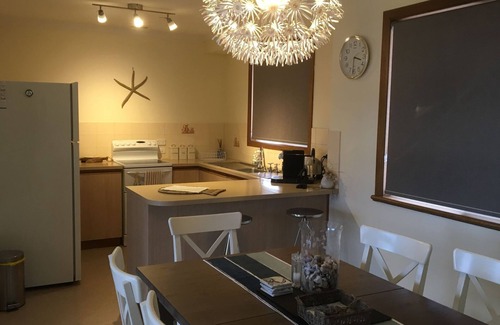 Bussy's Beach house is self contained waterfront accommodation approximately 15 minutes drive from Wallaroo & Kadina, with beautiful uninterrupted views west across Spencer Gulf looking towards Cowell, it has 2 bedrooms, which can sleep 5. There is plenty of parking out the back & to the side, so you can bring your boat to take advantage of the fishing. Supplied is a nespresso coffee pod machine, dishwasher, BBQ & a fully functional kitchen. 2 TV's & DVD's.