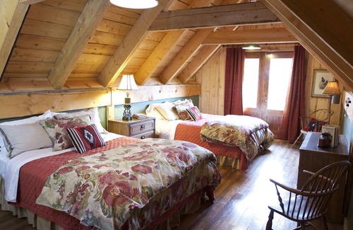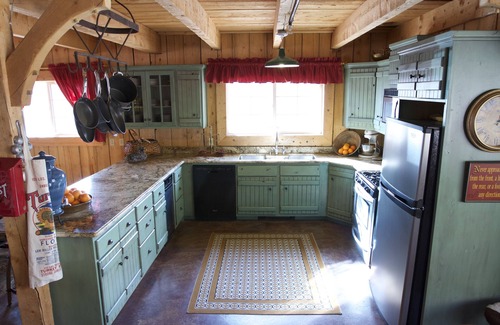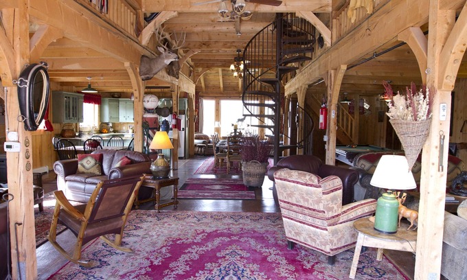 If you like hiking, fishing, exploring, or even pickle ball, Elk Valley Ranch is perfect for you. Nestled between Boulder Mountain and the wild country of Capitol Reef National park lies Elk Valley Ranch. Adventure and excitement abounds in this amazing part of Utah. Our lodge will exceed your expectations! It is the perfect place to bring your family and grandchildren. The attention to details are perfect. The large open main floor is fabulous with an open beamed ceiling, antiques and comfortable furniture. The kitchen will feel like home with granite countertops and great space to prepare meals for your family, as well as having enough seating for all at two large beautiful tables. There are great spaces for all of the adults to visit as well as kids. In the Great room is a pool table, flat screen TV/DVD, film and book libraries, game table and board games, as well as free WI FI. The spacious bathrooms are great with three sinks and in one and two in the other. The Cliff Overlook bedroom has a king size bed and the Gone Fishin' bedroom has two queens. Another queen bed is nestled in one corner of the Great Room. The loft is perfect for children who feel like they're having a sleepover.