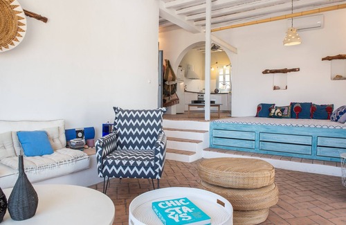 C-actus is a recently renovated hillside house, situated in a secluded rural area though very close to some of the main touristic spots like the port of Patmos(Skala) and the beach of Meloi. Built in respect to the local Cycladic architecture, the house blends uniquely in the rocky topography of its prime and unspoiled setting, and enjoys breath-taking, panoramic views over the Aegean Sea.