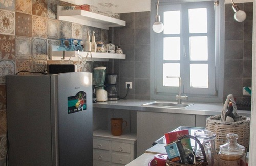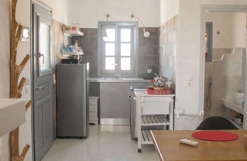 The house covers a total area of 200 s.m. in three levels and it is suitable for up to six guests. The middle level consists of a bright elegant air-conditioned living room, an open plan fully equipped kitchen and a bathroom, and has direct access to a beautiful veranda. An elevated area inside the living room with a king mattress serves as the third bedroom. The top-level features two spacious bedrooms with quin size beds and a bathroom. Both bedrooms have air-conditioning and open up to balconies which offer magnificent sea and port views. Downstairs, there is a spacious fully equipped apartment with amazing sea view and verandas. There is one double bed, a sofa which can be a single bed, kitchen and bathroom.