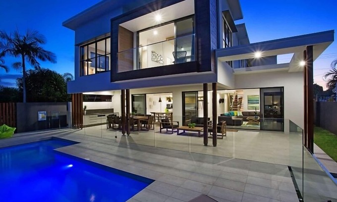 Best-rates for the Broadbeach Waters house starts from $1,194 per night with includes Balcony/Terrace, Guest Services, Fireplace/Heating, Child Friendly, Bedding/Linens, Wellness Facilities, Kitchen, Breakfast, Laundry, Air Conditioner, Parking, Pool, Private Pool, Security/Safety, Sports/Activities, TV With all other amenities. Float Homes offers a wide range of floating homes, houseboats, and water chalets, ensuring each traveler finds their ideal water escape, whether planning a water getaway, a family vacation, or a pet-friendly retreat with the whole group.