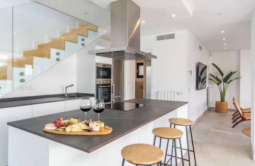 Barcares 1 km from Alcúdia: Modern, very comfortable semi-detached house "Ca na Cati", 2 storeys, semi-detached, built in 2020. In the district of Barcarés, in a quiet position residential area (villas), 2 km from the edge of the forest, 200 m from the sea, 350 m from the beach. Private: garden with wildlife garden, courtyard, swimming pool angular (4 x 3 m, depth 50 - 160 cm, seasonal availability: 01.Jan. - 31.Dec.) with salt-electrolysis pool-cleaning system. Outdoor shower, patio, arbour, pergola, garden furniture, barbecue, pool maintenance by the owner/gardener. In the house: internet access, WiFi, storage room for bicycles, central heating system, air conditioning, washing machine, tumble dryer. Parking at the house on the premises. Shop 1 km, grocery 1 km, supermarket 1.2 km, restaurant, bar 950 m, bakery 1.2 km, pedestrian zone 500 m, bicycle rental 1 km, pub garden 950 m, 15 minute walk to the centre, bus stop 1 km, sandy beach "Es Morer Vermell" 1 km pebble beach "Sa Marina", shingle beach "Barcares" 350 m, swimming bay 250 m. Sports harbour 3 km, marina 3 km, golf course (18 hole) 5 km, surf school 1 km, tennis 2 km, riding stable 2.5 km, sports centre 200 m, walking paths from the house, cycle lane 500 m. Nearby attractions: Ciudad Romana de Alcúdia. 1 km, Port de Pollença - Pollença 4 km, Puerto de Alcúdia 3 km, Serra de Tramuntana, Playa / Faro de Formentor. Hiking paths: S'Albufera d'Alcúdia, Ermita de la Victoria - s'Atalaia d'Alcú, Puig de Sant Martí. Please note: suitable for families, suitable for seniors. Object suitable for 6 adults. The owner does not accept any youth groups. Airfield 50 km from the property. Neighbourhood highly sensitive to noise. Quietness and good behaviour expected.