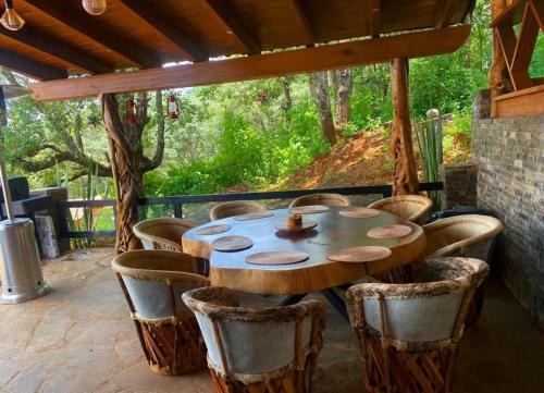 Offering a bar, Cabaña MAZAMITLA offers accommodations in Mazamitla. This property offers access to a balcony, free private parking, and free Wifi. The accommodation features private check-in and check-out, a tour desk, and currency exchange for guests. Featuring a terrace and mountain views, the spacious chalet includes 1 bedroom, a living room, satellite flat-screen TV, an equipped kitchen, and 5 bathrooms with an a bath or shower. Towels and bed linen are available in the chalet. There's also a seating area and a fireplace. An indoor play area is also available at the chalet, while guests can also relax in the garden. Licenciado Miguel de la Madrid Airport is 76 miles from the property.