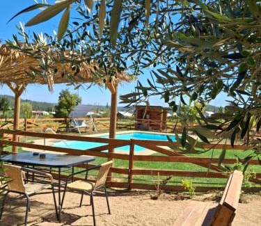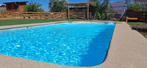 Located in Ñipas in the Nuble region, Cabaña Refugio Magenta con tinaja caliente incluida features a balcony. Featuring garden views, a garden and a private pool, this lodge also offers free WiFi. The lodge has 2 bedrooms, 1 bathroom, bed linen, towels, a flat-screen TV, a dining area, a fully equipped kitchen, and a terrace with mountain views. The air-conditioned lodge also provides a seating area, and a bathroom with a shower and a bath. The lodge has a grill. Chillan Train Station is 30 miles from Cabaña Refugio Magenta con tinaja caliente incluida.