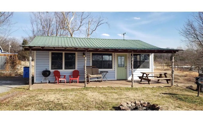 Cabin #2 is a 2 Bedroom Cabin with a queen bed in each bedroom, a sleeper sofa in the living room. Kitchen, living and dinning are all one open space. One full bathroom with tub/shower combo. Covered patio with charcoal grill, picnic table and fire pit overlooking Beautiful Lake Eufaula, Oklahoma.
