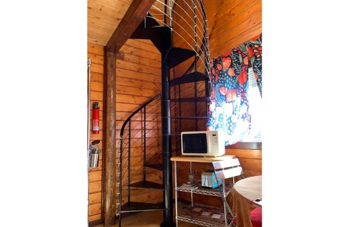 This cozy Cabin has everything you need to retreat from your daily Alaskan Aventure. Our two-story cabin has a fully equipped kitchen, an open concept living space for the dining- living room area, and a full bathroom. It will comfortably sleep up to six guests. The first floor has a bedroom with a King bed. The second floor offers a Loft area with three beds', a Queen, Full and Twin bed.