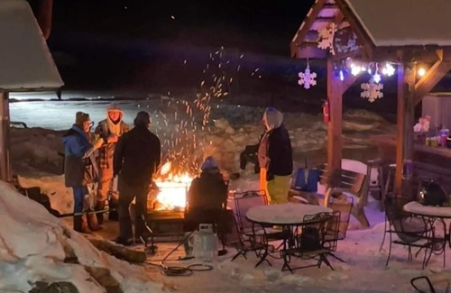 Winter fun! Skating rink in the bay, lake tours in our snow travel bus. Heated ice fishing houses for rent. Snow mobile rental.