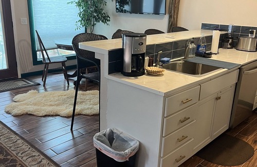 Alexa & Wi-Fi is set up in all cabins. Every TV is set up with Netflix, YouTube & Prime. 50"-55" TV downstairs, 32 " TV upstairs. Our cabins are beautifully decorated and supplied with everything you need, including luggage racks. Cabin #7 also has a dishwasher in the kitchen for your convenience.