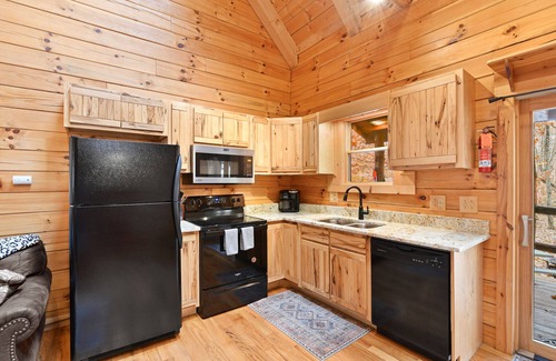 Welcome to Hocking Hills! This charming 2 bedroom cabin is perfect for your group of friends or family! Sit on the covered porch with your morning coffee and enjoy the sounds of the birds chirping. Head inside to cozy up on the couch in front of the fireplace and stream your favorite movies! Beautiful vaulted ceilings with wood beams make the cabin feel oversized but still cozy! Cook any meal you'd like with our fully equipped kitchen a coffee maker, toaster, pots & pans, dishes, and plasticware. Grill out back on the Charcoal Grill, or have your meals over an open bonfire! the downstairs bedroom has a queen bed and private full bathroom for 100% privacy! There is another full bathroom in the hallway.