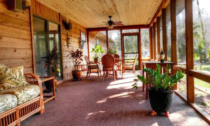 Take it easy at this unique and tranquil getaway. The property has 1.7 acres full of birds and wildlife. However, it is still close to shopping, restaurants, and attractions such as the unique Playa Linda with just the sea and nature - no hotels or houses. 45 minutes away from Disney World and 30 minutes from Orlando Airport.