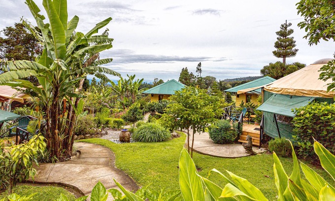 The Villa Gauguin Oasis provides a variety of accommodations including two cabins, a garden apartment, luxury yurts and a pavilion. There are seven individual rentable units which can accommodate up to 20 guests. Visitors enjoy an exciting dome lounge space furnished with 64" smart tv, karaoke, chess and game tables, an expansive library and room for yoga, stretching and tai chi. The entire oasis is wifi enabled. The veranda outside the dome lounge offers seating for reading, conversation, star gazing, sun bathing and cloud pondering.