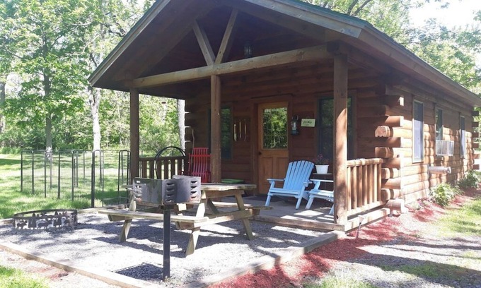 The Basswood Cabin is a dog-friendly cabin with a kitchenette, 2 BR (one queen and bunk beds), and sleeps 3 comfortably.