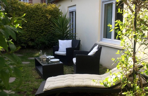 Charming 35m² maisonette, renovated, on a private 40m² garden, facing south, in the heart of the resort, five minutes from the beach, at the foot of shops and restaurants.