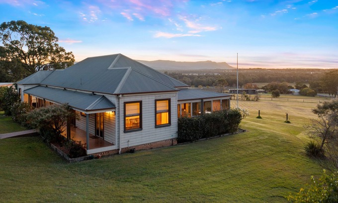 Relax & enjoy magnificent mountain views & amazing sunsets from this character 4 bedroom, 2.5 bathroom country style home, set in its own dedicated 5 acres adjacent to vines, right in the heart of the Hunter Valley, close to wineries & restaurants.