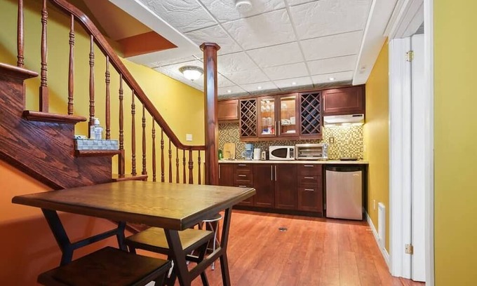 Bachelor's pad tucked away in a peaceful location! This cozy quarter is perfect for solo travelers or couples seeking a tranquil retreat. The space features all the comforts of home, including a plush queen-size bed, a KITCHENETTE, and a shower. Enjoy the fresh air and serene setting or take a stroll through the nearby parks and nature trails. With easy access to local shops and restaurants, this is the ideal home base for your next adventure. Experience the best of relaxation and convenience! Welcome to our charming basement unit on Kinkora Street! This cozy retreat offers all the comfort and privacy you need during your stay. The unit features one spacious bedroom, providing a peaceful haven for a good night's rest. The well-equipped kitchenette is perfect for preparing light meals, and the modern bathroom ensures a refreshing experience. In the open-concept living area, you'll find a stylish bar-style dining set, ideal for enjoying meals or simply relaxing with a drink. Whether you're here for business or leisure, our basement unit promises a warm and inviting ambiance that will make you feel right at home. Conveniently located on Kinkora Street, you'll have easy access to nearby attractions, restaurants, and public transportation, making it a great starting point to explore the city. We look forward to hosting you and providing you with a delightful experience during your stay!