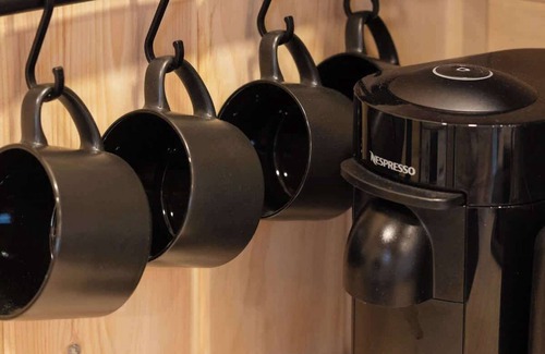 You'll find a comfortable bed with a plush king-sized bed, offering a peaceful night's sleep. The fully equipped kitchenette allows you to prepare delicious meals. It includes a induction stovetop, mini refrigerator/freezer, microwave, and all the cookware and utensils you need.