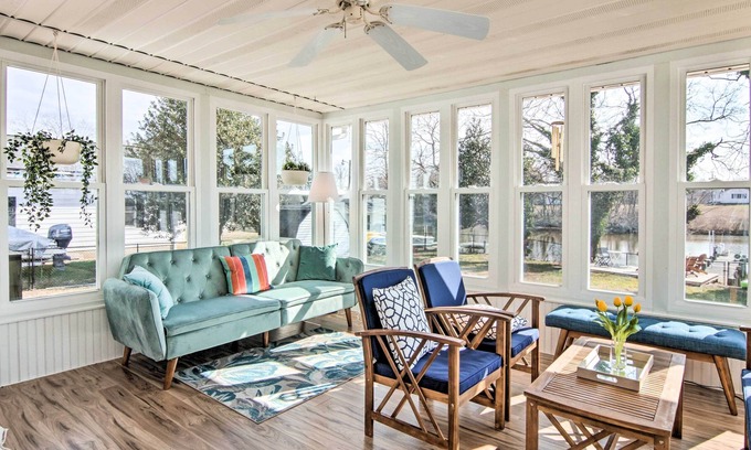 Immerse yourself in the scenic views, maritime heritage, history, and art that Cambridge has to offer with a stay at this charming 4-bedroom, 2-bath creekside home. Boasting a fully equipped kitchen for home-cooked meals, fire pit, kayaks, and a game room for family fun, this idyllic retreat will serve as the perfect home base. Spend days boating out on the Chesapeake Bay, visiting the Harriet Tubman Underground Railroad National Historical Park, or exploring Bill Burton Fishing Pier State Park!