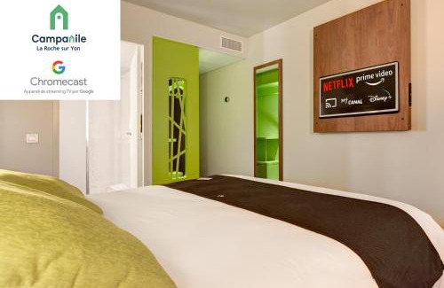 Campanile La Roche Sur Yon Center Gare is located in La Roche-sur-Yon, a few yards from the train station and 2953 feet from Place Napoléon. This 24-hour reception hotel offers rooms with attached bathroom with a cable, LCD TV. Free high speed WiFi is available. The soundproofed rooms feature a flat-screen TV and a private bathroom with bath or shower. A hairdryer and free toiletries are also available for guests' convenience. Some of the rooms are adapted to people with reduced mobility. Chromecast service is provided to the guests in entire property. A buffet breakfast with fresh juice, brioche and pastries is available daily and snacks and drinks can be enjoyed in the Café Area. Guests can order light meals in their rooms at any time and restaurants can be found within a walking distance. Additional facilities include a safety deposit box. The hotel is 3.1 mi from Vendespace and 4.4 mi from Domangère Golf Course. Nantes Atlantique Airport is 34 mi away. The property offers a discounted parking space at "Gare Est" Parking, located next to the hotel.