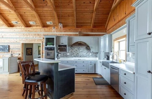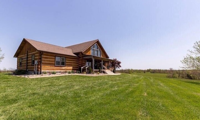 This log home is built on 140 acres of secluded, beautiful countryside. Perfect for large family gatherings or peaceful getaway. This cabin has been our family's dream for 20 years, and we're excited to share the beauty and tranquility of it with others. It's a farmhouse ideal for playing and enjoying the outdoors during the day; then roasting s'mores and enjoying the hot tub and stars at night. Please note: this is a very rural setting, about 20 minutes from the nearest stores and conveniences.