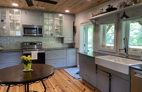 Charmingly renovated modern farm cottage on a property with gardens and chickens and all sorts of farm animals in the neighborhood. Large screened in back porch with a beautiful view of the pasture and barns. Owner lives next door if you need anything during your stay.