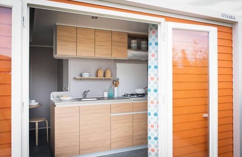 The Mobile Home includes: Heating and television Kitchen equipped with: hob, fridge, microwave, electric coffee maker, kitchen utensils Hair dryer Terrace with garden furniture and sun loungers Duvets, pillows and sheets provided