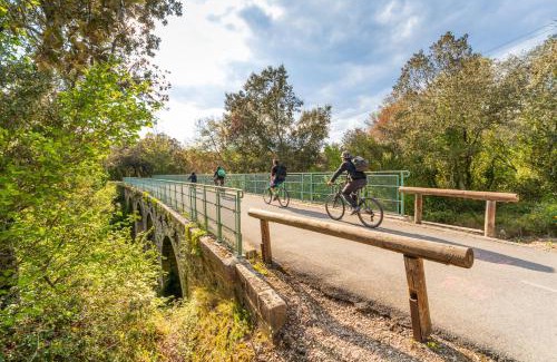 Offering pool with a view, Camping les lodges du lagon offers accommodations in Calvisson. The air-conditioned accommodations are 13 miles from Parc Expo Nîmes, and guests can benefit from on-site private parking and complimentary Wifi. This 3-star campground offers private entrance. Each unit has a terrace, a fully equipped kitchen with a microwave, a dining area, and a seating area with a TV, while the private bathroom includes a shower and a hair dryer. A fridge, a stovetop, and kitchenware are also featured, as well as a coffee machine and a kettle. At the campground, each unit comes with bed linen and towels. A selection of options including fresh pastries, fruit, and juice are served for the continental breakfast. There is a coffee shop and bar. Guests at the campground will be able to enjoy activities in and around Calvisson, like cycling. A water park and outdoor play equipment are available at Camping les lodges du lagon, while guests can also relax in the garden. Zenith Sud Montpellier is 22 miles from the accommodation, while Odysseum Shopping Center is 23 miles away. Nimes-Ales-Camargue-Cevennes Airport is 16 miles from the property.