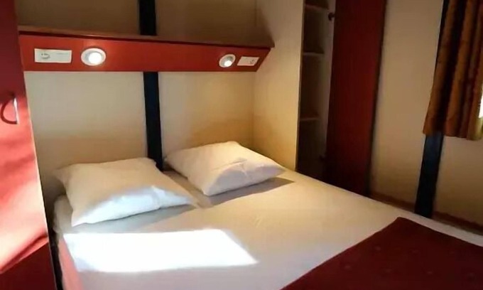 Details: Wi-Fi access : the entire campsite (codes at reception) Playground for children : swing and various games Family animations : several times in the summer Corsican song evenings Bedding : 30€/double bed, 25€/single bed - to be paid on site Number of stars : 3 Ping Pong : rackets and balls at reception Swimming pool Restaurant Snack bar Tourist tax included Tennis : by reservation - rackets and balls at reception Sports animations Sin Animals not allowed Coffee maker Deposit (in euros) : 250 Freezer Microwave oven Household included Number of bedrooms : 2 Number of double bed : 1 Number of single beds : 3 Number of pieces : 3 Number of toilets : 1 Number of bathroom : 1 Car park Cooking plate Fridge Garden Lounge Terrace Dishes and cutlery Cooked Air conditioner