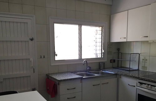 Fully equipped kitchen, with ceramic hob, dishwasher, refrigerator, microwave, coffee maker, toaster and other utensils.