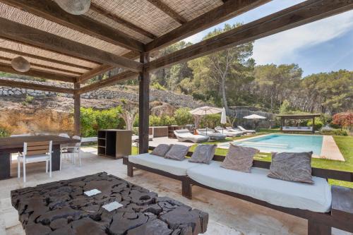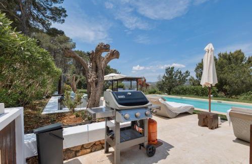 Featuring a garden, Can Ribes Ibiza features accommodations in Illes Balears. This property offers a private pool, free Wifi, and free private parking. The property provides barbecue facilities and outdoor furniture. Leading onto a balcony with garden views, the spacious air-conditioned villa consists of 4 bedrooms. Providing a terrace with mountain views, this villa also provides guests with a cable TV, a well-equipped kitchen with a dishwasher, an oven, and a microwave, as well as 4 bathrooms. For added privacy, the accommodation features a private entrance. Marina Botafoch is 10 miles from the villa, while Ibiza Port is 11 miles away. Ibiza Airport is 14 miles from the property.