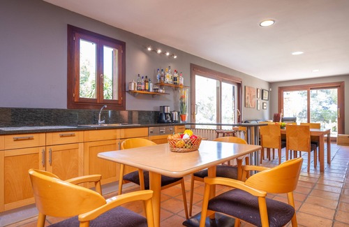 The outdoor area is a paradise. The private chlorine pool invites you to enjoy a refreshing swim while contemplating the spectacular mountain scenery. It has a size of 8 x 8 m, a depth of 1 to 1,90 m. Here you can enjoy a barbecue, a cool drink and sunbathe on the sun loungers. Several corners are ideal for reading or organising pleasant evenings.